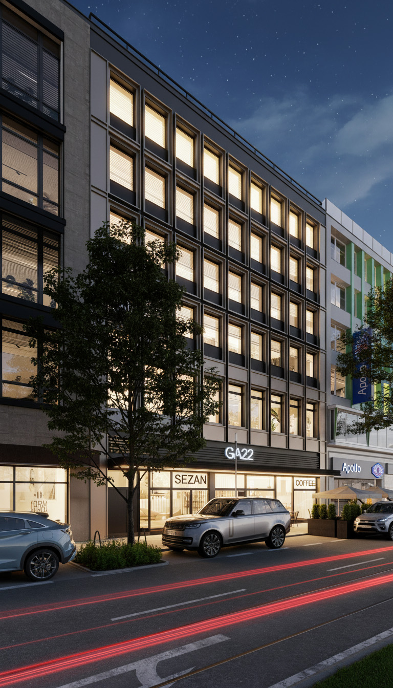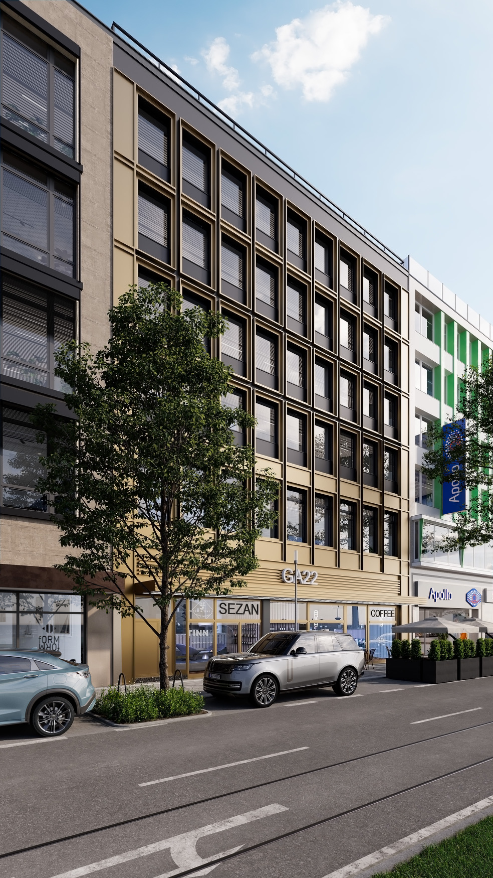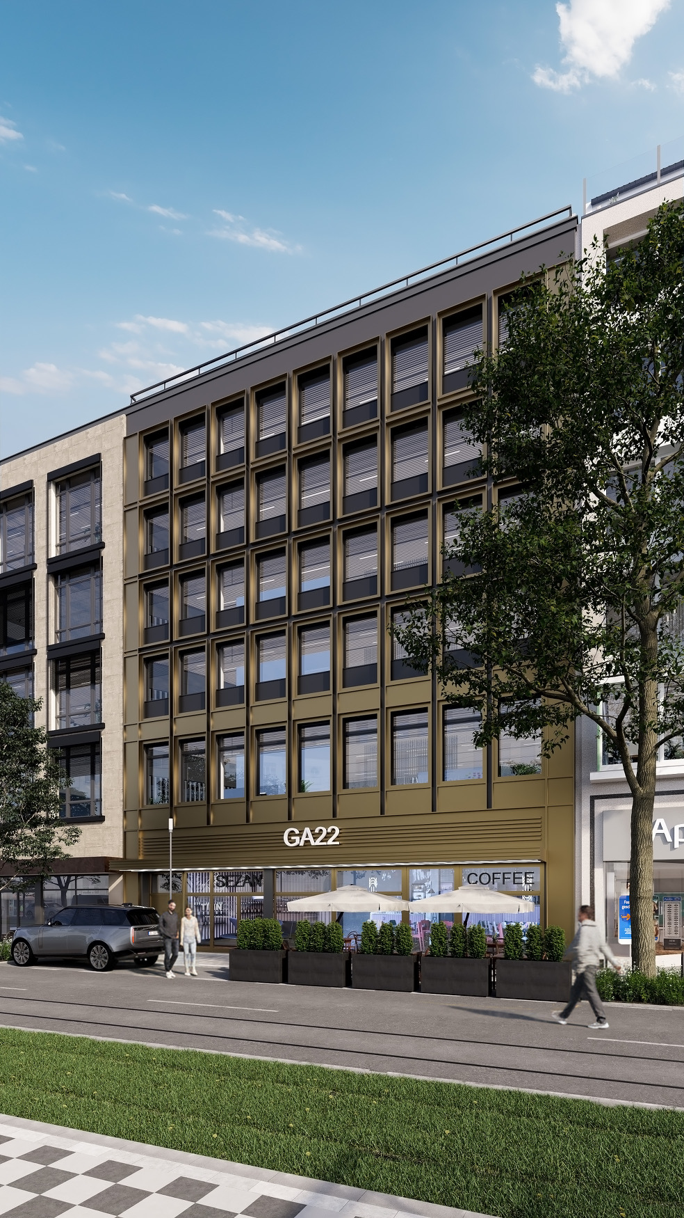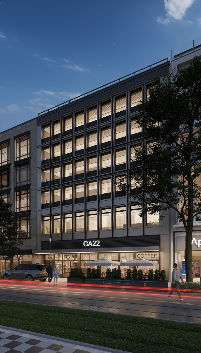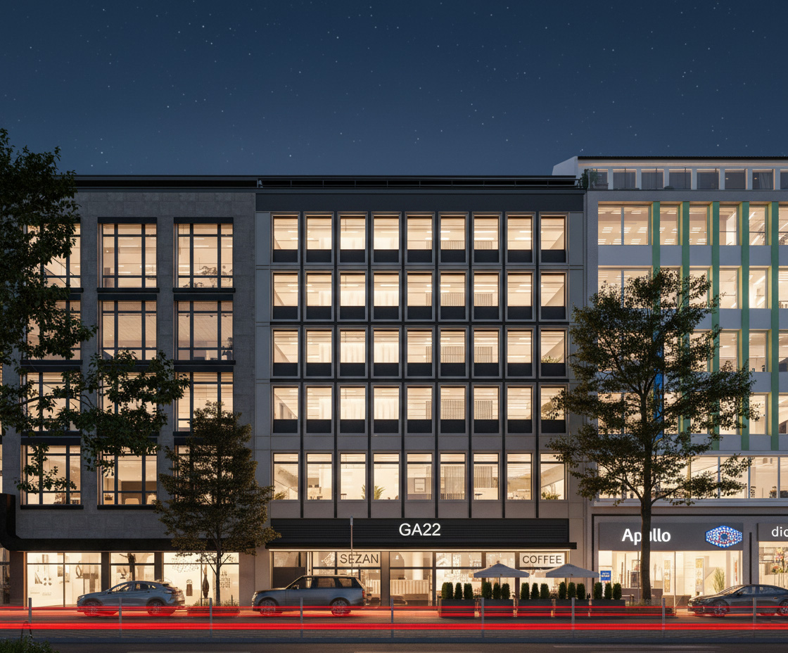 Graf-Adolf-Strasse 22 in Düsseldorf. Fassadenstudie für ein Geschäftshaus.